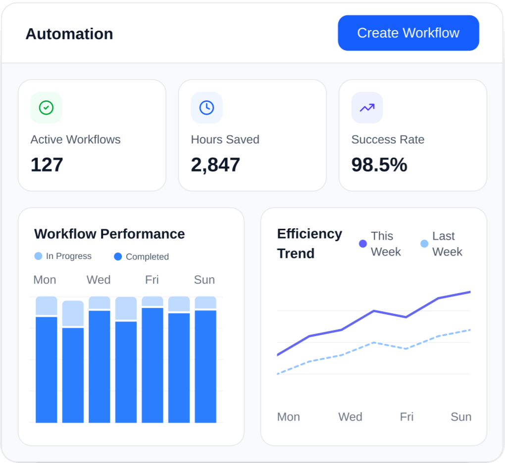 Устраните ручные задачи с помощью интеллектуальных автоматизированных рабочих процессов. От ответов email до записи данных, от обработки счетов до адаптации клиентов — позвольте искусственному интеллекту справиться с рутиной, чтобы Ваша команда могла сосредоточиться на инновациях и развитии.