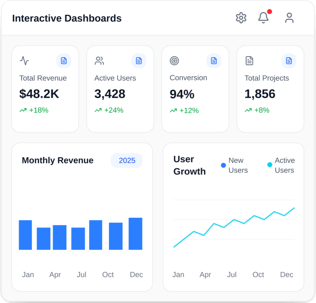 Глубоко погрузитесь в свои данные с помощью расширенных инструментов аналитики. Выявляйте паттерны, тенденции и идеи, которые способствуют принятию взвешенных решений в компании и стратегическому планированию.